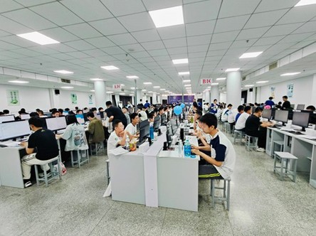 上午8时30分,参赛选手们怀揣着对编程领域未来的憧憬和对胜利的渴望,步履坚定地进入考场。9时整,在宣布文件解压密码后,比赛正式开始。比赛期间一切井然有序,参赛选手全程遵循考场纪律,全身心投入比赛,展示出深厚的编程功底和敏捷的思维能力。监考人员和机房技术人员协调配合,严肃认真,学院学生会志愿者后勤服务工作及时到位。历经4个小时高强度比拼,下午13时软件类大赛顺利结束,下午14时,电子类比赛完美收官。
