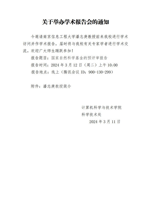 学术报告会通知(计算机学院)-潘志庚