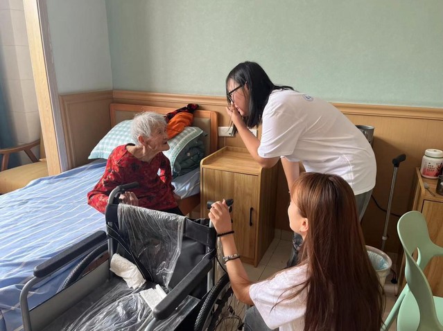 上午九时,实践团成员们准时到达颐善园养老护理中心。在韩红英的带领下,大家迅速分成几个小组,投入到紧张而有序的志愿服务中。成员们分工明确,有的拿起扫帚、抹布,仔细打扫老人们的房间和公共区域,确保每一个角落都干净整洁;有的则坐在老人身边,耐心地倾听他们的故事,陪他们聊天解闷,用青春的笑容和温暖的话语驱散老人心中的孤独与寂寞。