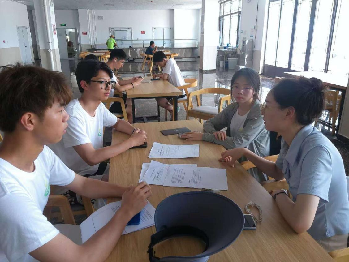 参观结束后,实践团成员与大闸蟹研究院的工作人员进行了面对面交流。通过交流,实践团成员了解到,近年来,为保护黄河流域生态,确保黄河流域高质量发展,企业减少了对黄河水的引取量,该举措通过反复净化、循环利用引自黄河的养殖用水来实现。这虽然限制了黄河口大闸蟹的养殖规模,但企业表示,这是他们对黄河流域生态保护和高质量发展做出的力所能及的事,也是他们需要承担的责任。听到此,同学们也纷纷表示要为保护黄河做自己力所能及的事。