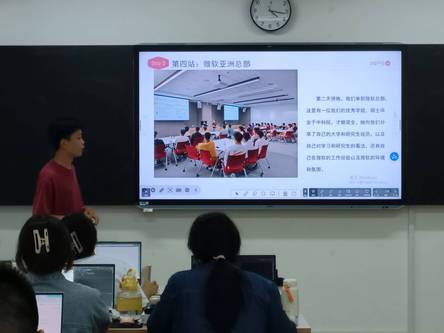 另外,王宏祥介绍到,在微软亚洲总部有一位优秀的学姐,并且介绍了微软的工作环境,同学们对此都表现出极高的热情。