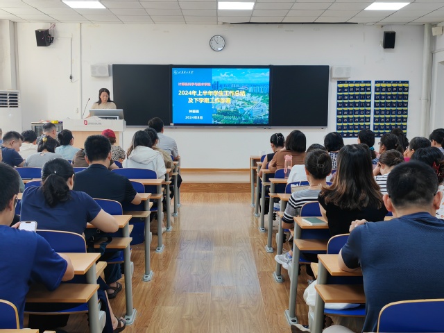 钟丽霞总结了上半年学生工作目标任务完成情况,师德师风工作建设情况,并部署下半年工作计划。她指出,下半年学院要继续加强学生科技创新能力培养,以高质量就业和人才培养为目标,持续做好2024届毕业生就业跟踪、2025届学生分类指导、其他年级学生职业生涯规划等工作,努力实现科创、招生、就业等工作新突破。