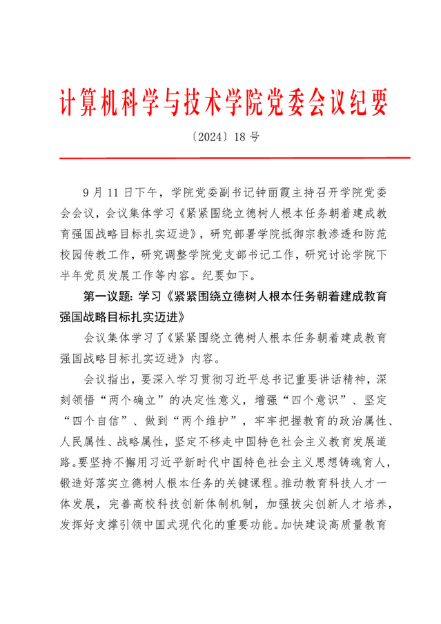 党委会议纪要 〔2024〕18号