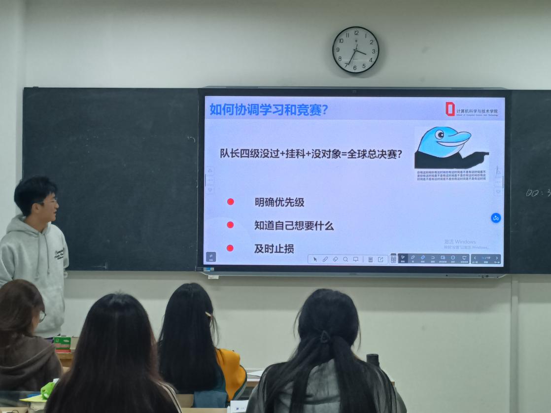 两位主讲阐述了科技竞赛的重要性。科创竞赛是图灵班同学们应该重点关注的方面,希望同学们可以继续努力,积极参加各类科技竞赛,争取更好的成绩。