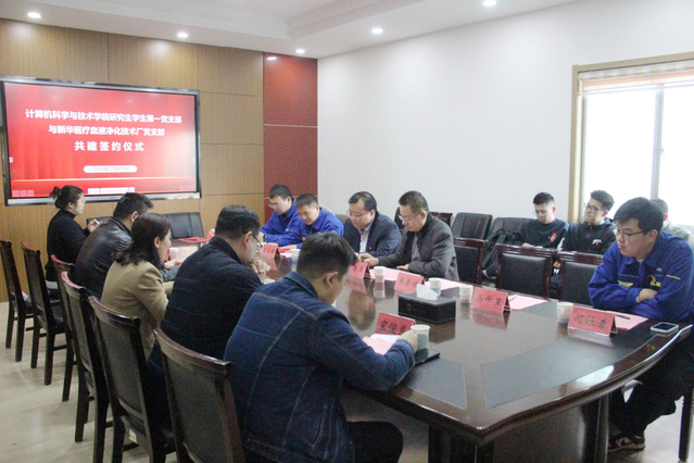 研究生学生第一党支部和新华医疗血液净化技术厂党支部负责人共同签署了《党支部共建协议书》。根据协议,双方将以党员队伍共育、党建活动共办的方式开展一系列共建活动。通过常态化交流,共同促进党员的理论学习与思想交流,提高党员队伍的综合素质和业务能力。以党建引领建立信息共享机制,充分发挥各自在党建资源、工作经验、人才储备等方面的优势,实现资源共享、优势互补,联合开展科研攻坚、技术创新行动,推进企业产品升级、技术进步,为学院人才培养提供“练兵场”,共同探索和创新党建工作模式,实现共赢。