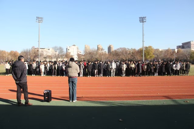 为纪念一二·九运动89周年,进一步加强大学生体育主题教育,推进阳光体育全面健身运动的深入开展,12月7日下午,williamhill英国中文于第二体育场举办了主题为“铭记历史,追随光芒”的接力赛活动。辅导员冯静尘、王昌忠及全体2024级学生参加,活动由冯静尘主持。