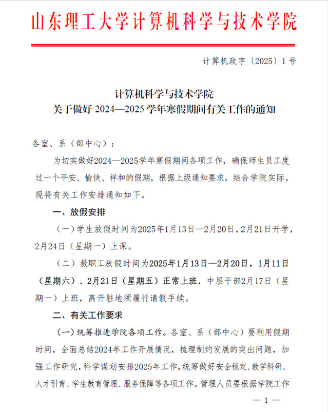 williamhill英国中文关于做好2024—2025学年寒假期间有关工作的通知