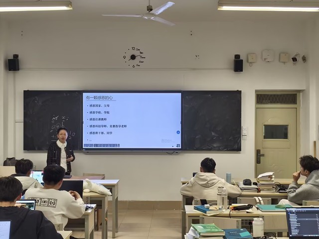 3月12日晚上七点,24级图灵班班主任崔鑫老师主持召开班会并邀请国家奖学金获得者刘涛和付本硕两位学长分享获奖经验,意在激励我班同学奋发向上,明确目标,向榜样学习,增强学习的动力。 首先由崔鑫老师对上学期的学习情况做出总结以及指出上学期学习情况出现的问题并作出应对策略,强调青年人应当胸怀宽广,扬理想风帆,达成功彼岸,并且无论是对父母,对老师还是对学校,都应当怀有一颗感恩的心,这样才能端正生活态度,增加我们对生活的热爱和希望。