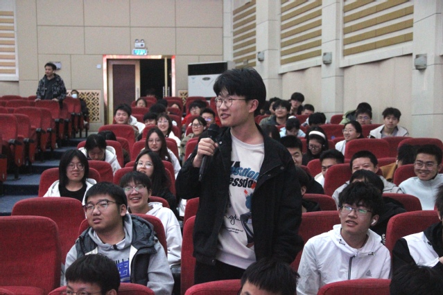 讲座特别设置了消防知识提问环节。乔晓通过趣味问答的形式与同学们展开互动,提出了“灭火器的正确使用步骤是什么?”“宿舍内哪些行为容易引发火灾?”等实用性问题,在互动中讲解消防安全知识。同学们踊跃举手回答,现场气氛热烈。通过这一环节,同学们不仅巩固了理论知识,还掌握了实用的应急技能,为应对突发情况打下了坚实基础。