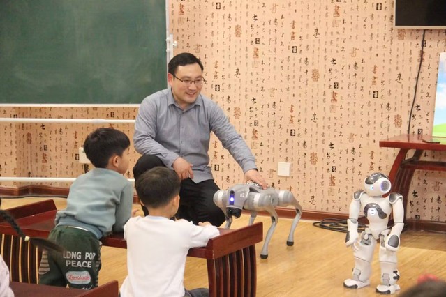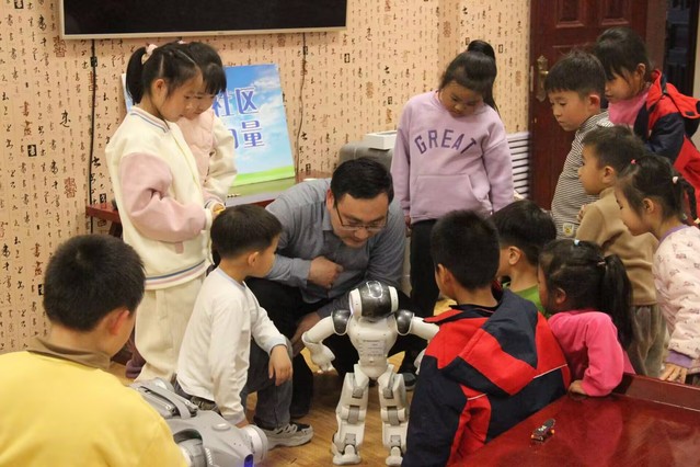 活动中,张立晔以生动有趣的方式,深入浅出地向小朋友们讲解了机器人的基本原理以及在各个领域的广泛应用,并为孩子们展示了机器人跳舞、搬运物品等精彩操作。灵活多变的机器人瞬间吸引了小朋友们的目光,现场惊叹声和掌声此起彼伏。为帮助小朋友们深入理解编程与机器人之间的紧密联系,张立晔采用通俗易懂的方式,向孩子们介绍了编程知识,让他们明白可以通过编写程序,赋予机器人各种神奇功能,激发他们对编程的探索欲望。