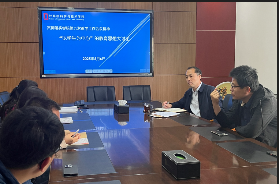 2025年5月6日下午14:30,我院在9教204会议室召开"以学生为中心"教育思想专题研讨会。学院党委书记田兆富出席会议并讲话,来自计算机软件系、人工智能系、计算机科学系等各系的支部书记、系主任和教师代表共9人参加会议。会议围绕贯彻落实学校第九次教学工作会议精神,就如何深化"以学生为中心"的教育教学改革展开深入研讨。