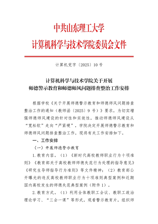 计算机党字【2025】10号-williamhill英国中文关于开展师德警示教育和师德师风问题排查整治工作安排