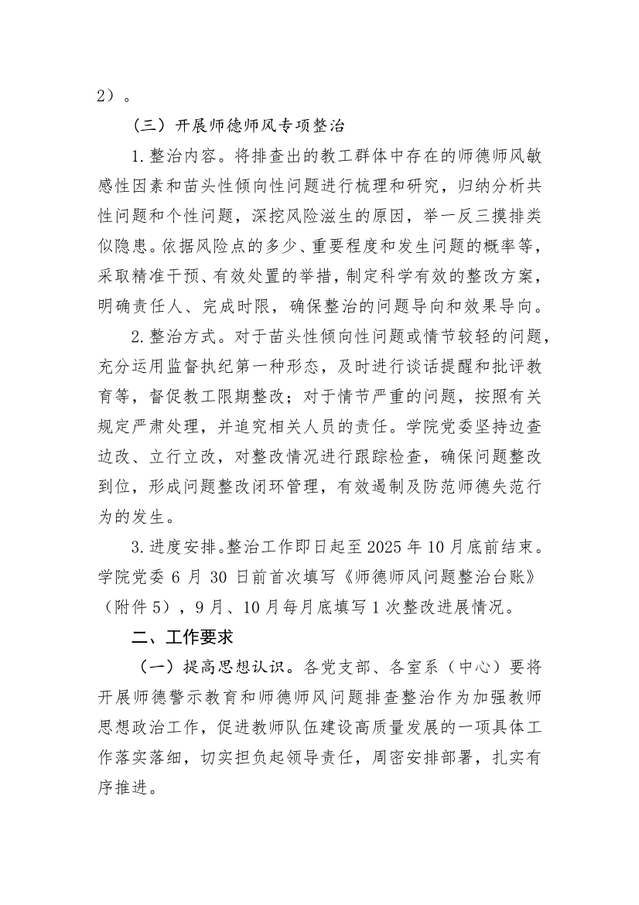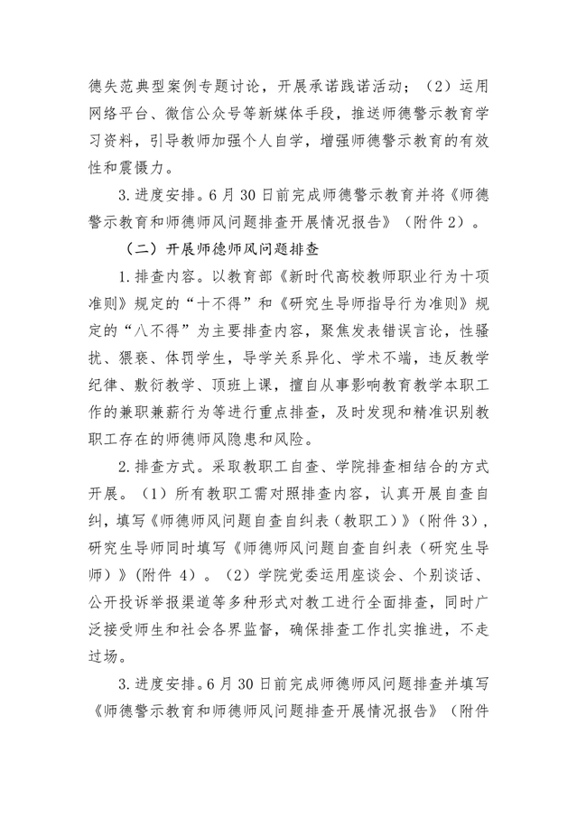 关于开展师德警示教育和师德师风问题排查整治工作安排