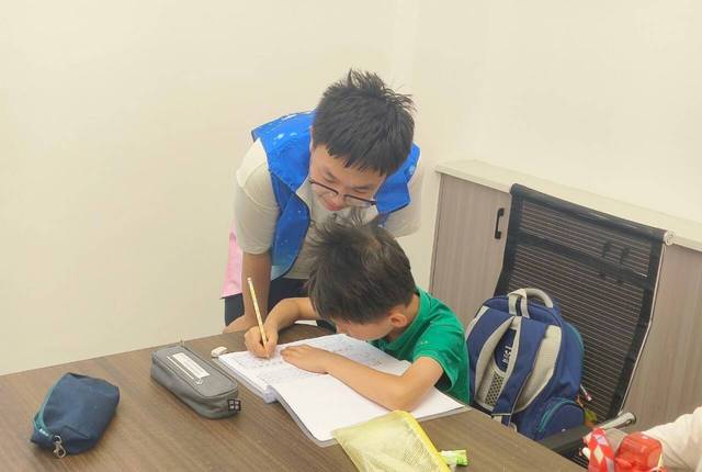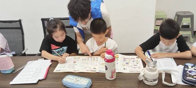 课业精辅导,研学巧解惑 在作业辅导环节,实践团成员们精心为孩子们准备的 “查漏补缺” 环节。实践团成员们分成几个小组,各自走到孩子们身边,耐心询问他们在假期作业中遇到的难题。实践团成员用通俗易懂的语言讲解解题思路。在整个作业辅导过程中,实践团成员们始终保持着耐心和细心,为孩子们搭建起一个贴心的学习平台,帮助他们扫清学习障碍。