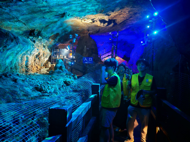 实践团成员首先踏入溶洞群,面对形态各异的钟乳石、石笋、石柱等自然景观,在感受自然魅力的同时,充分发挥计算机的技术优势,为溶洞旅游开发注入数字赋能元素。成员们借助随身携带的数据记录工具,对溶洞内的景观分布、空间结构等信息进行采集,并且结合计算机专业知识探讨如何通过数字技术将这些信息转化为可视化的溶洞资料,以便更好地帮助游客了解溶洞的地质特点与形成历程。同时,针对溶洞内的安全提示、游览路线等实际问题,实践团提出利用数字标识、智能导航等方式进行优化的提议,力求通过数字手段提升游览的便捷性与安全性。