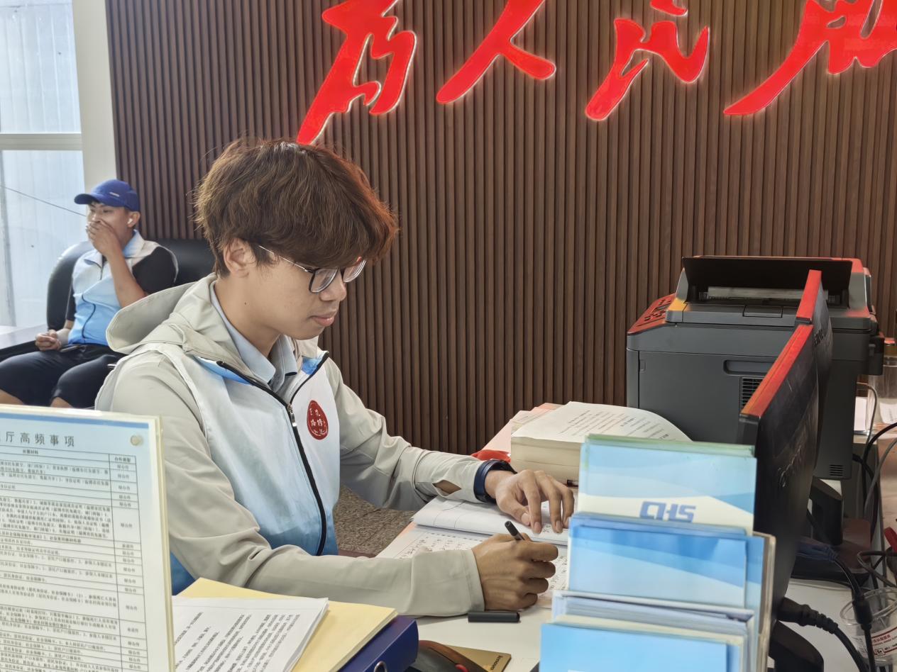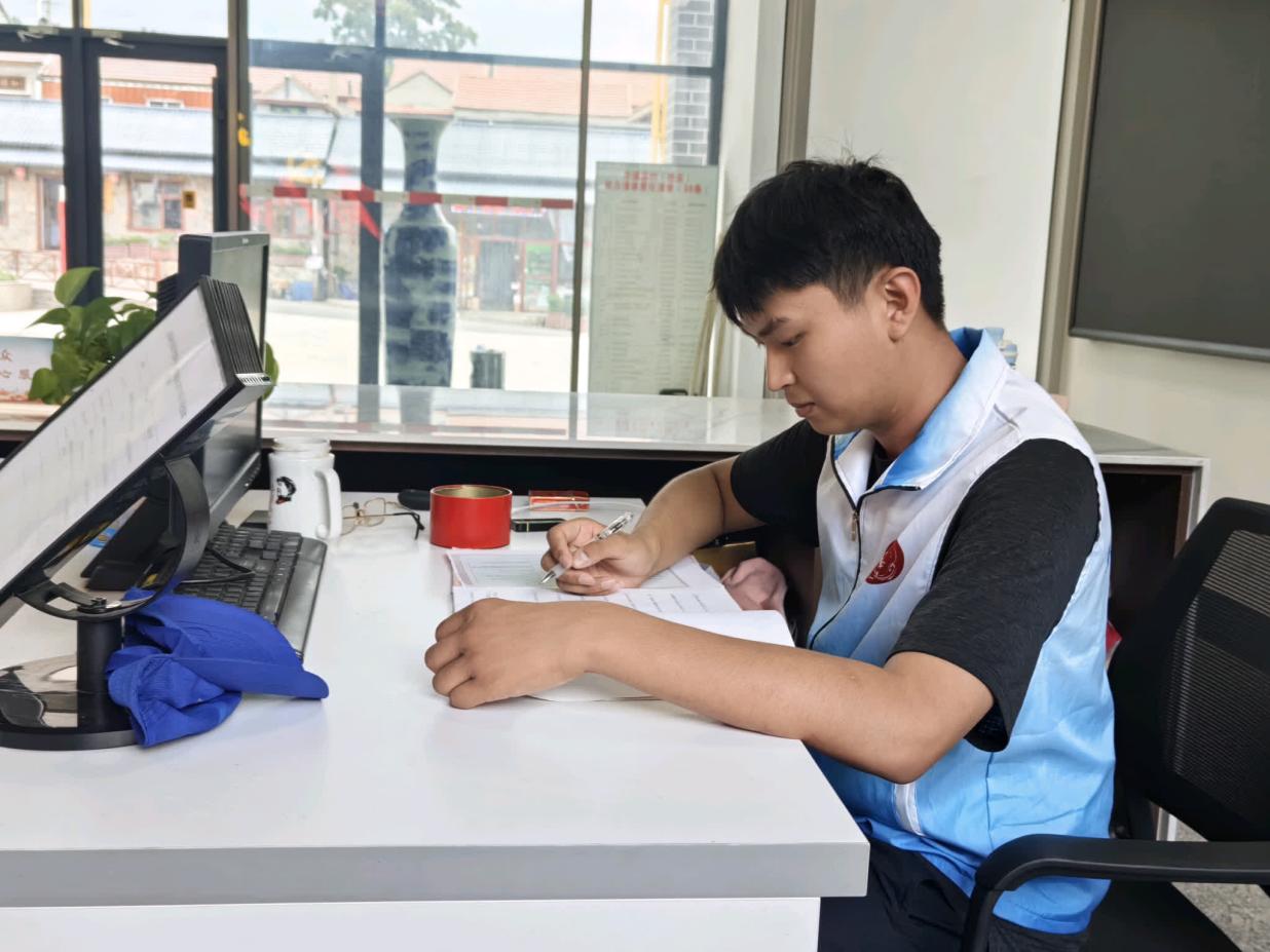 在大厅内,志愿者们根据不同职责,积极投身到服务工作中。一部分成员担任引导员与咨询师,为前来办理事务的村民提供政策解答、表格填写指导,并耐心协助老年人完成各项业务,确保群众享受便捷、高效的服务。另一部分成员走进办公室,协助整理档案、归类文件,提升了服务中心的工作效率。同时,几位信息技术背景的成员提出优化电子政务平台的建议,帮助提升数字化服务水平,为党群服务中心注入了更多智慧与活力。