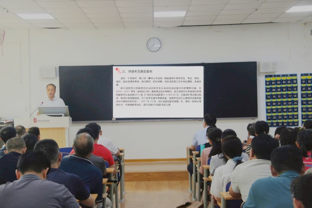 会议最后,田兆富号召教师坚定“心有大我、至诚报国”的信念,践行“言为士则、行为世范”的操守,发挥“启智润心、因材施教”的智慧,秉持“勤学笃行、求是创新”的态度,传承尊师重教传统,弘扬崇智尚学风尚。并强调以“四有”好老师为标准,做到以德立身、以德施教,推动新时代高水平教师队伍建设。