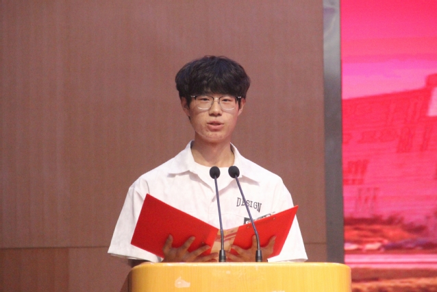 在校学生代表计科2405班潘浩雨向学弟学妹们分享大学体会与感悟。他强调大学生首要任务是学好专业知识,深入理解课本并自学课外资源,提升专业素质。同时要以乐促学,参与社团等活动,缓解压力、促进身心发展,培养全面素养。最后,他鼓励学弟学妹坚定信念、勇于追梦。