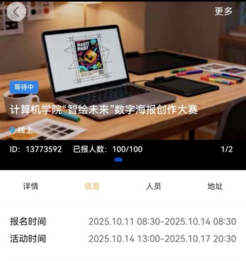 “智绘未来”数字海报创作大赛的举办,为学院学生搭建了一个展示自我与交流创意的平台,推动了科技与艺术的深度融合。计算机学院将继续坚持“以赛促学、以创促研”的理念,激励学生在创新实践中提升专业素养,助力校园科技文化建设。