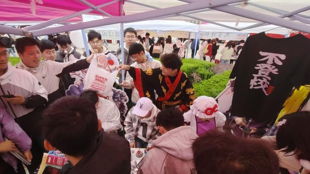 在现场有许多coser扮演各种动漫角色,和同学们合影,互赠周边登小礼品。同时社团也准备了抽奖活动,最高从玩偶到钥匙扣等等,希望每个同学都能参与进来。