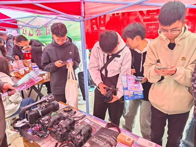 活动现场,社团成员为咨询的同学讲解联盟的核心价值、组织架构与培养计划,并邀请感兴趣的学生上手操作设备,现场指导构图、运镜基础,让大家近距离感受影像创作的乐趣。为进一步激发学生热情,社团还设置了幸运抽奖环节,参与者可以通过社团设置的抽奖小程序获得定制的摄影纪念品。轻松有趣的互动形式,不仅活跃了现场氛围,也让更多同学对社团有了更深入的了解,增加了活动的参与互动性。