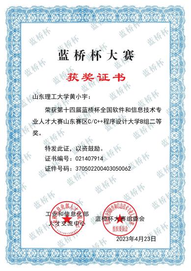 第十四届蓝桥杯c/c++大学B组山东赛区二等奖