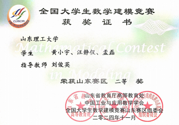 2024全国大学生数学建模竞赛山东赛区二等奖