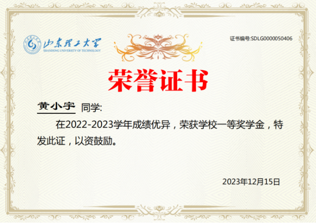 2022-2023校一等奖学金