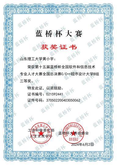 第十五届蓝桥杯c/c++大学B组全国总决赛三等奖