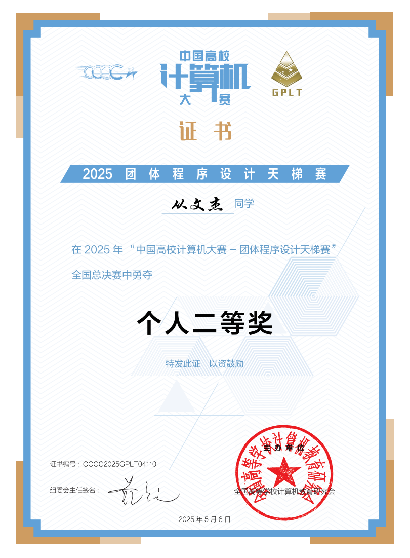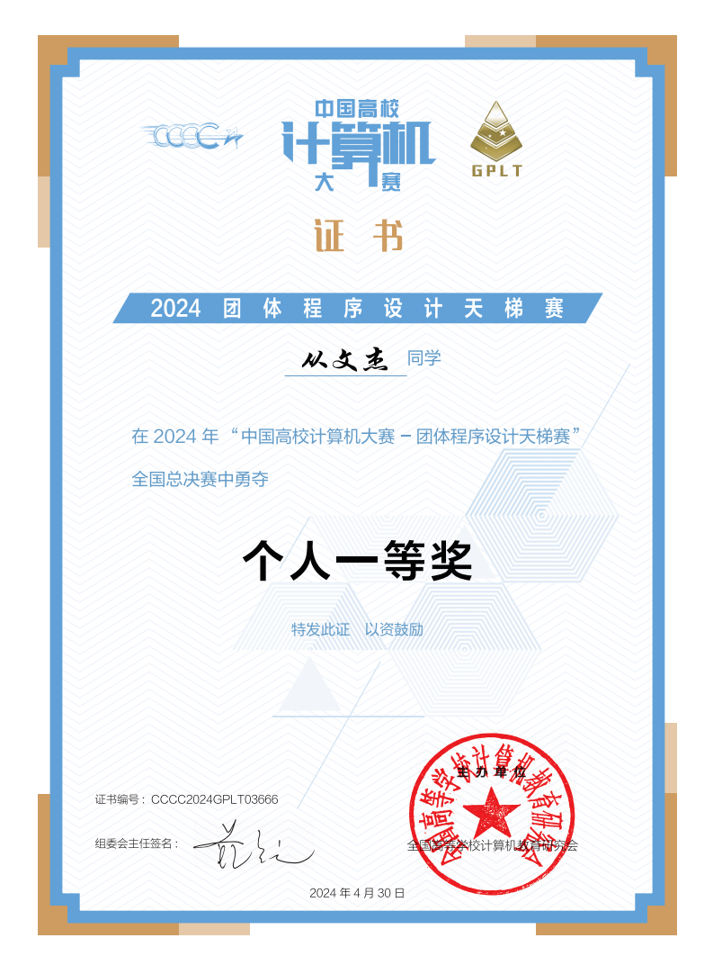 中国高校计算机大赛团体程序设计天梯赛全国一等奖