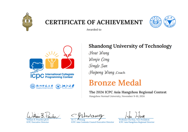 第49届国际大学生程序设计大赛亚洲区域赛(杭州站)铜牌