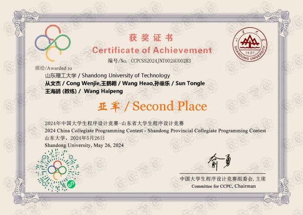 第48届国际大学生程序设计大赛亚洲区域赛(济南站)铜牌