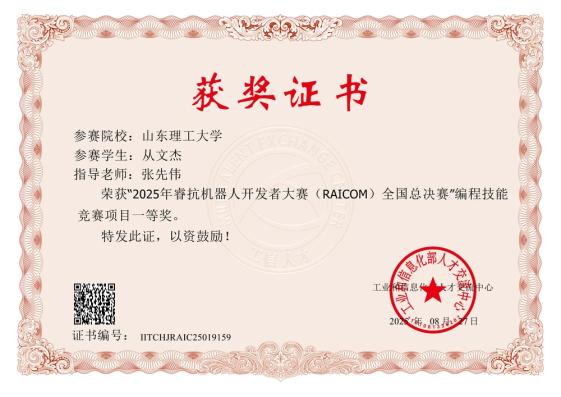 睿抗机器人开发者大赛编程技能竞赛全国一等奖