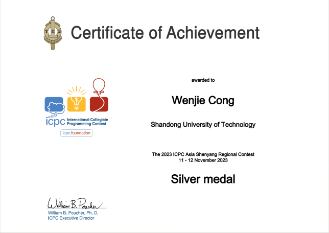 第48届国际大学生程序设计大赛亚洲区域赛(沈阳站)银牌