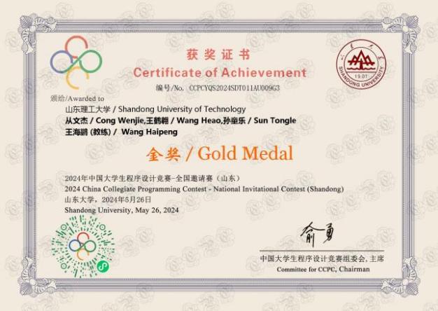 第10届中国大学生程序设计大赛(济南邀请赛)金牌