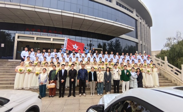 自比赛启动以来,学院高度重视,迅速组建由92名师生组成的合唱团,其中本科生89人,教职工3人,充分满足参赛要求。排练期间,合唱团在专业指导教师的带领以及学生会志愿者的组织下,合理协调教学科研与排练时间,利用课余及周末开展集中训练。成员们克服学业与工作压力,从发声技巧到声部配合,从情感表达至舞台呈现,反复打磨比赛曲目《十送红军》与校歌《你伴随我》,并大胆创新表演形式,将舞台剧叙事、朗诵抒怀与合唱抒情有机结合,打造沉浸式艺术体验。