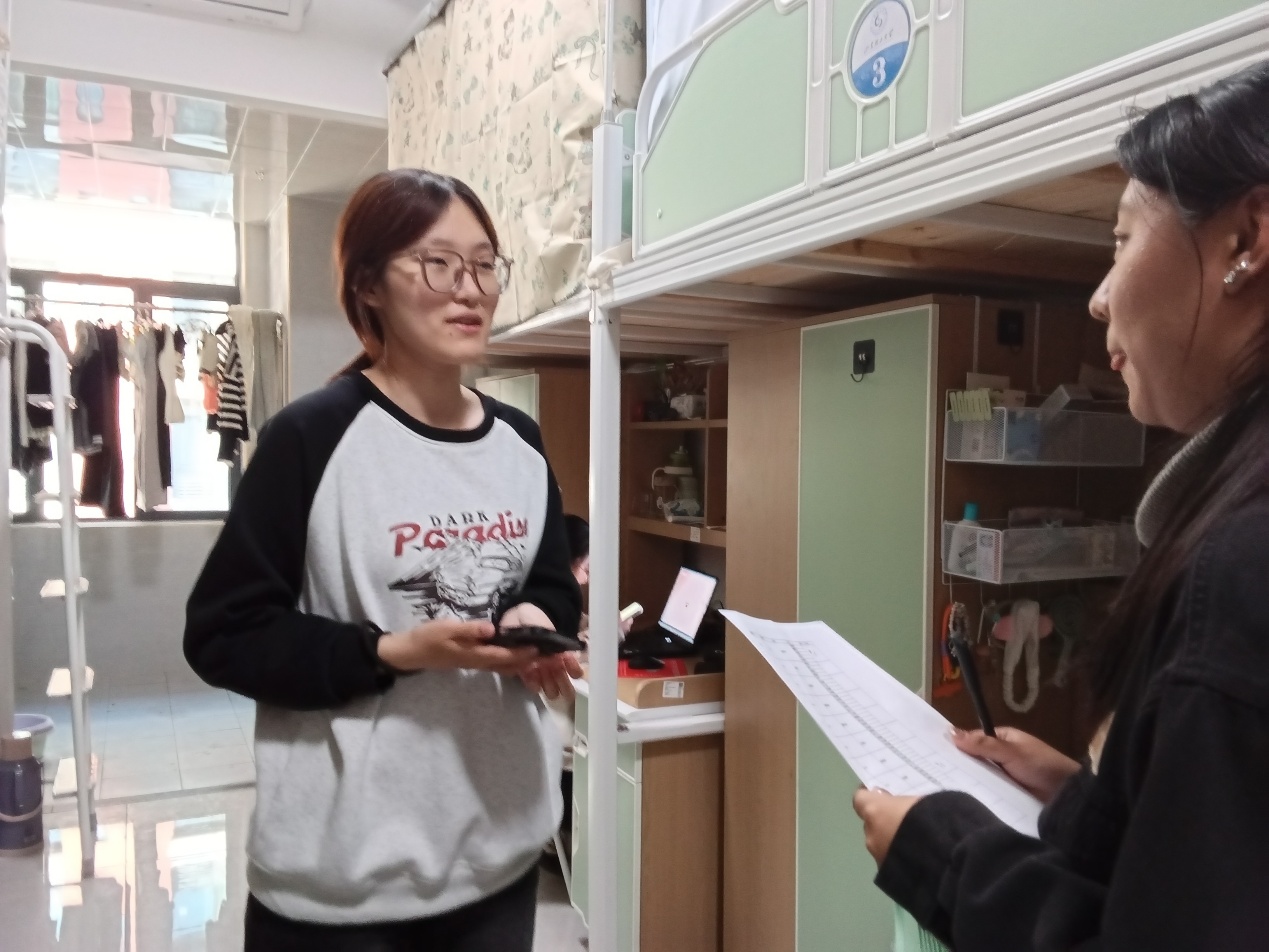 参与活动的学生首先在6号宿舍楼前集合,由工作人员讲解此次活动的基本流程并分发打分表。随后,各评分成员进入到自己所安排的楼层,对各宿舍内务情况进行打分,评选出优秀宿舍。