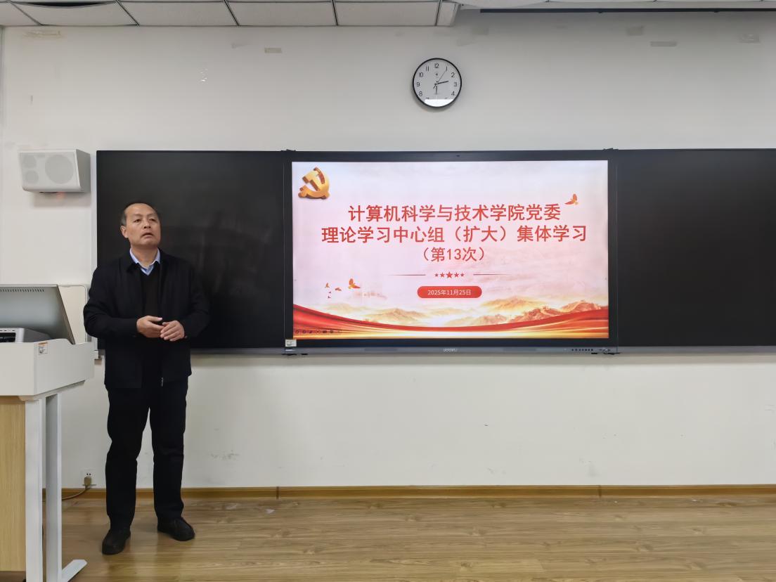最后,田兆富带领全体人员学习《习近平谈治国理政》第五卷“加快建设教育强国”专题内容。他强调,教育是强国建设、民族复兴之基,高等教育作为教育强国建设的关键环节,肩负着培养拔尖创新人才、支撑高水平科技自立自强的重要使命。他围绕建设教育强国的宏伟蓝图、核心任务和实践路径,重点解读了“立德树人根本任务”“教育科技人才良性循环”“提升教育公共服务质量”等关键部署。结合学院发展,他提出:要将教育强国建设要求融入学科发展规划,优化人才培养方案,强化核心素养培育,培养更多听党话、跟党走的时代新人;要聚焦国家战略需求,加强基础学科、新兴学科、交叉学科建设,推动科技成果转移转化;要统筹推进教育数字化与优质资源供给,提升教育教学质量和育人实效。