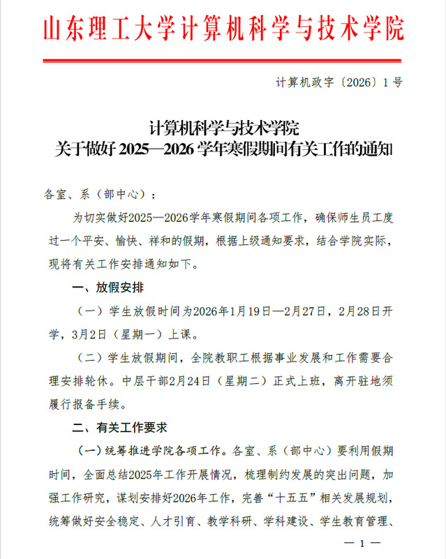计算机政字【2026】1号-williamhill英国中文关于做好2025—2026学年寒假期间有关工作的通知