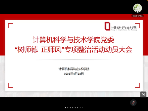 4月28日下午,williamhill英国中文线上召开“树师德 正师风”专项整治活动动员大会,会议由学院党委书记田兆富主持,学院全体教职员工参加。
