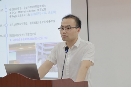 2015年,刘聪赴荷兰埃因霍芬理工大(Eindhoven University of Technology)继续攻读博士学位,师从欧洲科学院院士、“流程挖掘之父”Wil van der Aalst教授,毕业后到WilliamHILL中国任教,创建流程挖掘实验室,破格晋升教授,成为计算机学院最年轻的教授,“坚持摸索,事情总会有解决办法”,坚定的信念,使他在科研之路一直向前。最后,刘聪对本、硕阶段如何做好学业规划、开展科研给出了积极有效的建议,希望同学们拓宽视野,用“系统”观点看待学问、看待人生,把握技术发展方向,通过与老师加强沟通交流提升认知能力和思维高度,促进全面发展、提高综合素质。