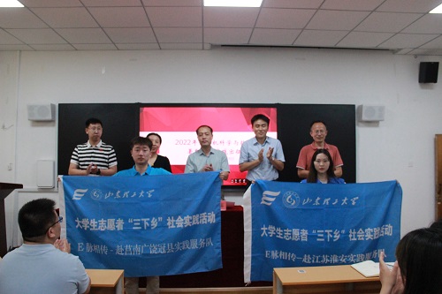 随后,与会领导、老师为实践团授旗。