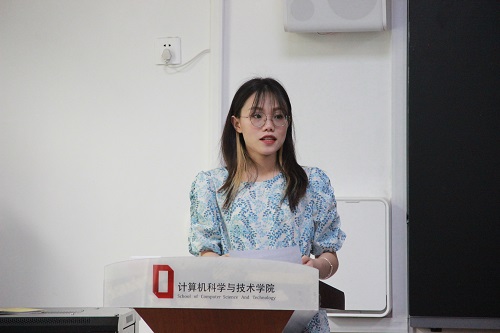 接下来,学生代表陈家乐进行发言。首先,她代表全体同学向领导老师的辛苦付出表达真诚的谢意。陈家乐讲到三年的时光是难以忘怀的,从迷茫到坚定,成长就这样悄然发生,未来在青软集团这个新起点,会同在学校一样,认真学习,不负期望。