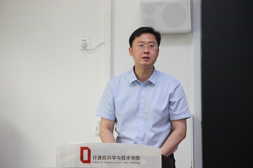王志强院长发表讲话,他讲到校企合作是技能人才培养制度的创新,是理论与实践相结合的培养模式的继承和创新。校企合作是一种注重培养质量,注重在校学习与企业实践,注重学校与企业资源、信息共享的“双赢模式”。在这离别之际,王志强院长对校企合作班提出三点希望:一是当今社会大数据技术应用已经融合到产业发展的方方面面,校企合作模式迎合国家政策,希望同学们始终保持危机感,时刻准备迎接挑战,担负民族复兴、国家崛起之重任。二是希望同学们保持积极开放,合作共赢的意识,胸怀人类命运共同体的担当,不断突破自己,在计算机学科发展史上留下山理工人浓墨重彩的一笔。三是祝愿同学们在实训中不断提高专业技能,再接再厉,早日成长一名德才兼备的优秀大学生。